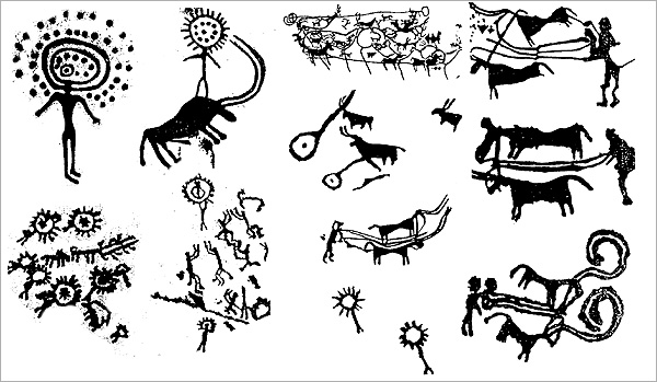 به گفته باستانشناسان، طرح این سنگها در قرن هشتم به وجود آمدهاند و اشعه خورشید باعث شده تا رنگ سنگها تغییر کند و نقاشیهای روی آن زیباتر به نظر برسند. در روی سنگها نقشهایی نظیر تصاویر حیوانات، خورشید، چرخدستی، چهرههای حیوانات و مردم آزاد آن زمان، تصاویر شخم زدن و نظیر آن به تصویر کشیده شده است که با وجود نقش و نگارهای زیاد، آنها را منتسب به پرستش خورشید نشان میدهد.