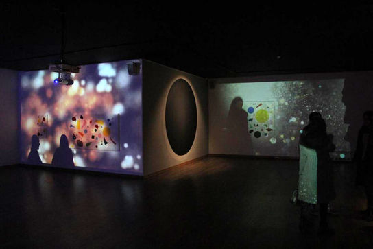این هنرمند افزود: یک دایره مشکی به عرض دو و نیم متر روی دیوار ورودی گالری کشیدیم و بر روی آخرین دیوار گالری هم یک دایره نورانی بزرگ را تاباندیم. این دو دایره نماد تاریکی مطلق و نور مطلق هستند و همه نقاشیها در فضای میان آن دو به نمایش درآمد. میخواستیم به مخاطب بگوییم که ما نه به تاریکی مطلق و نه به نور مطلق دسترسی داریم، بلکه هر چه ما تجربه میکنیم بین این دو نقطه است و در نتیجه همهچیز به صورت یک وهم و خیال درمیآید.
