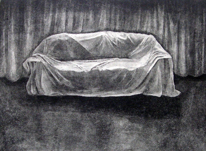 اما شادی سعیدی نگاهی دیگر به چاردیواری داشته و بخشی از لوازم خانه را مورد توجه قرار داده است. مبلهایی که روی آنها ملافه سفید کشیده شده است، تخت خواب و میز، هرکدام یکی از عناصری هستند که معمولا در هر خانهای دیده میشوند و در عینحال هرکدام از آنها فرمی چهارگوش دارند و خود میتوانند نوعی چاردیواری باشند.