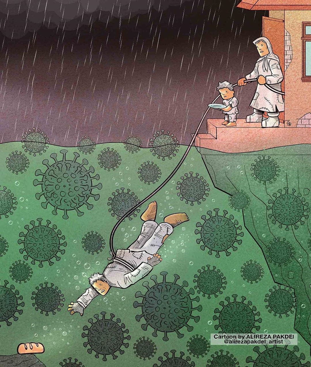 به گزارش روابط عمومی مرکز تجسمی حوزه هنری به نقل از مهر، علیرضا پاکدل هنرمند طراح و کاریکاتوریست از ابتدای شیوع بیماری کرونا، اقدام به طراحی کارتون با موضوعاتی چون «مبارزه کادر درمانی با کرونا» و «در خانه بمانیم» کرده و آثار وی در نشریات و سایتهای معتبر جهانی بازنشر شده است.