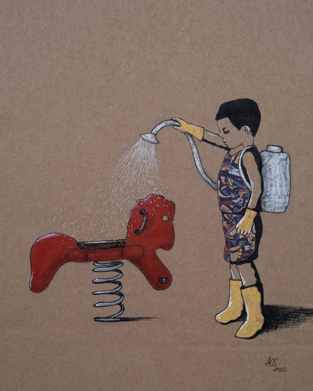 گروه دیگری از آثار این موزه نیز بر محور بازتاب حقایق جدید از فاصلهگذاری اجتماعی، استفاده مستمر از ضدعفونی کنندهها و افزایش وابستگی به دستگاههای دیجیتال در دوره خانهنشینی تمرکز دارند که در اغلب آنها میل به برقراری ارتباط یا فرار محسوس است.