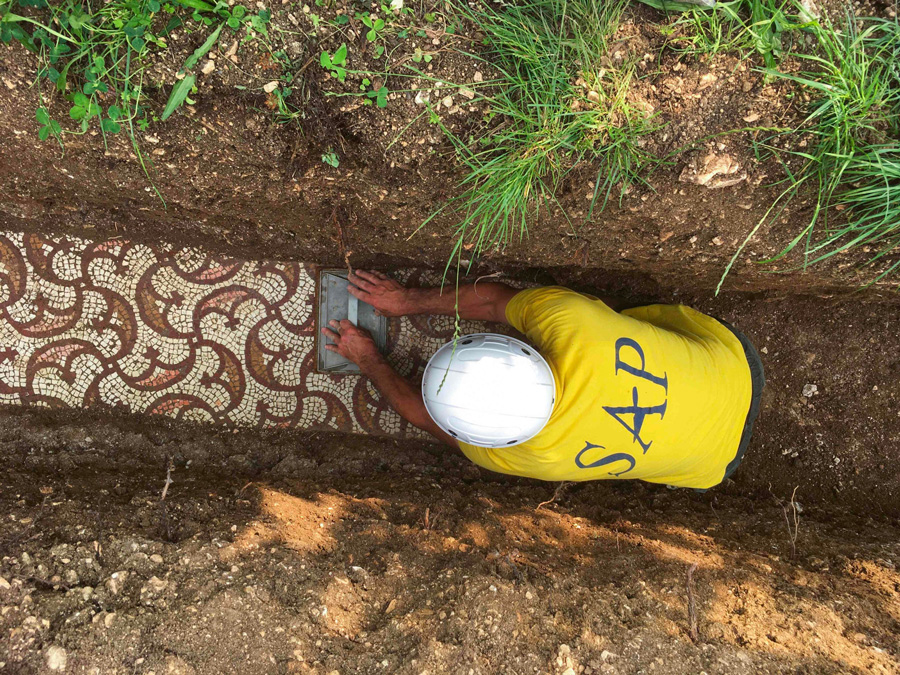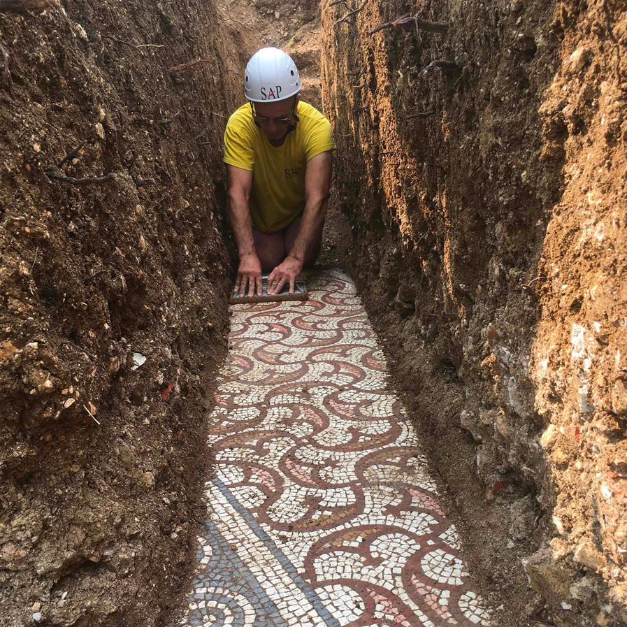 کار حفاری در ماههای اخیز بخاطر شیوع کرونا تعطیل شد تا اینکه همین هفته با شروع مجدد کار، موزائیکها چند متر زیر سطح زمین کشف شدند.