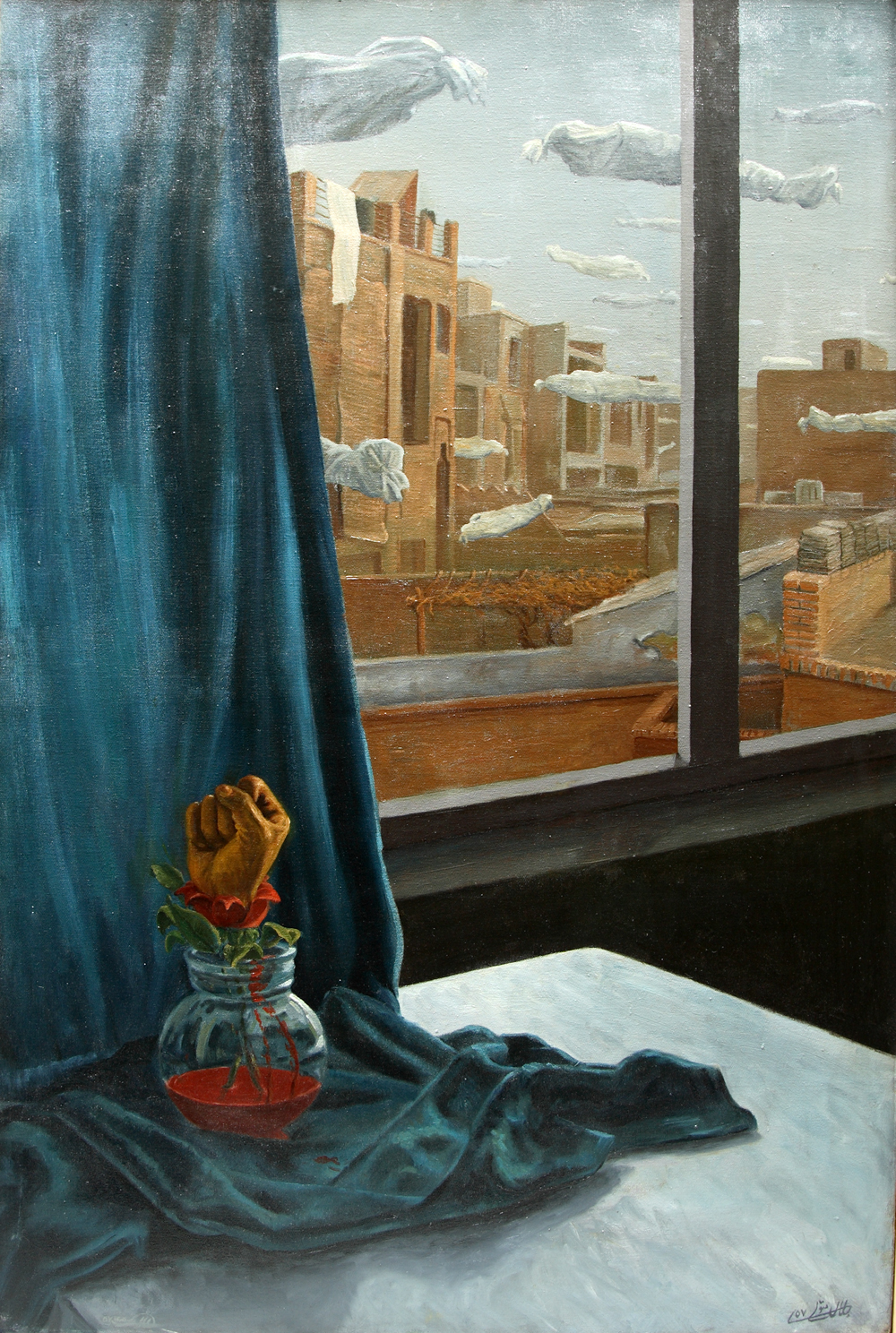 صبح پانزده خرداد / مصطفی گودرزی / 150 × 160 / رنگ و روغن روی بوم / 1365
