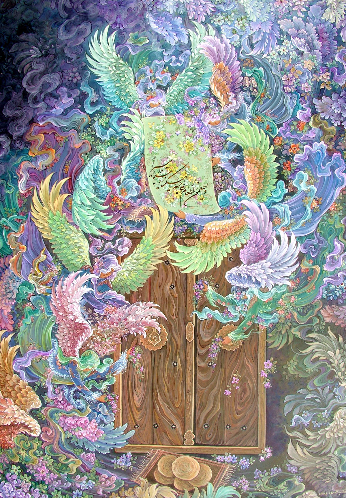 تسبیح مرغان / گواش و آبرنگ / 70×90