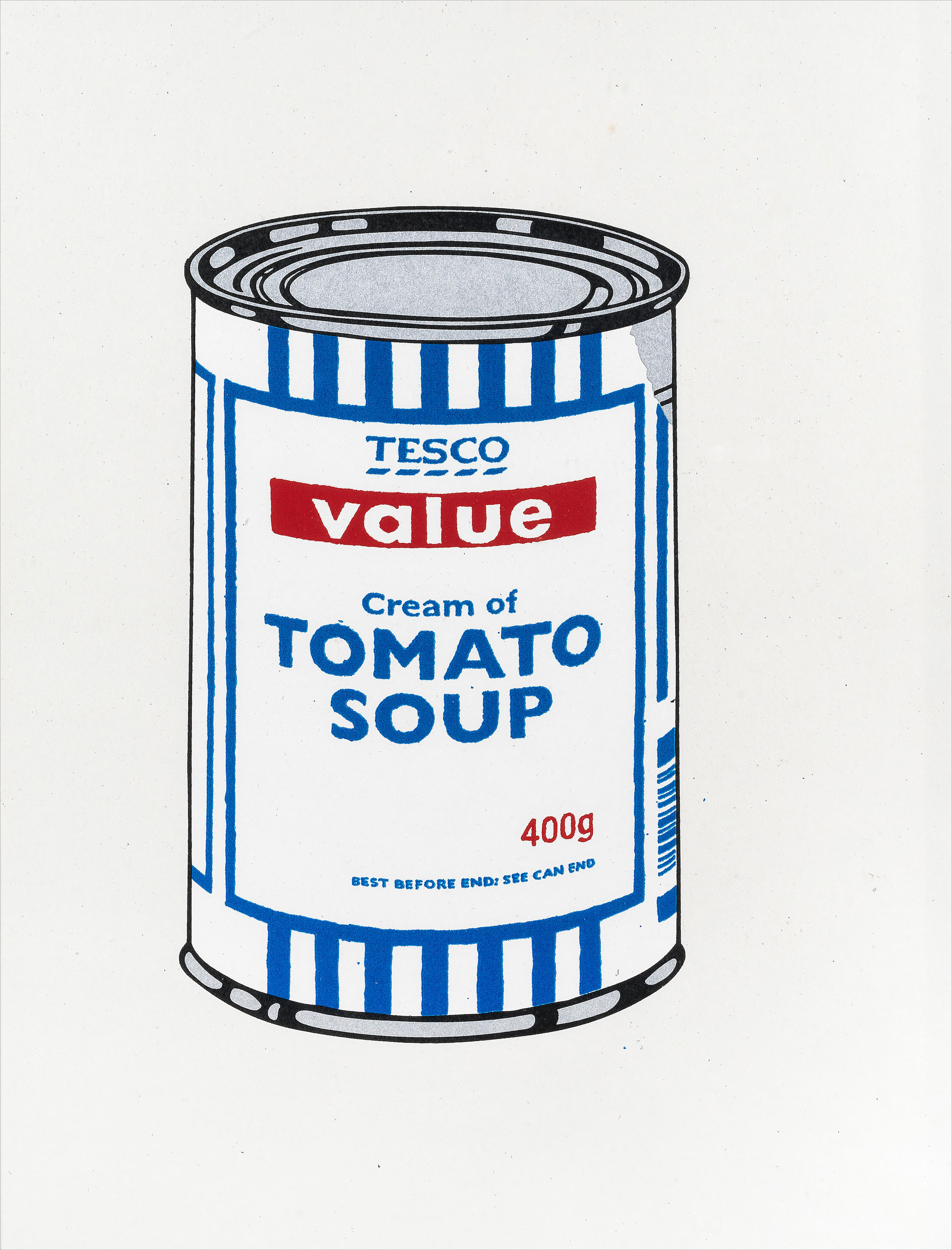 این هنرمند انگلیسی در قوطی سوپ نیز با ارائه پاستیشی از قوطیهای سوپ کمپبل اندی وارهول، نماد فراوانی پس از وقوع جنگ جهانی در آمریکا را به نشانی از کاهش هزینهها در قرن بیست و یکم تبدیل میکند.