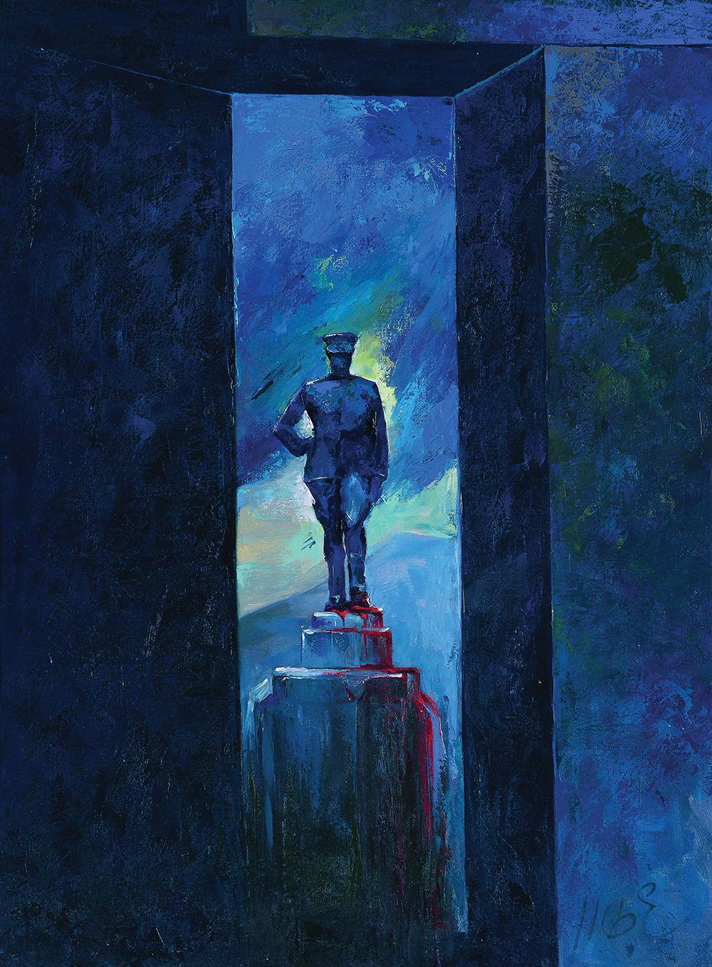 غلامعلی طاهری: «من میخواهم آدمهایی را نقاشی کنم که هر یک نماینده طیف وسیعی از جامعه هستند؛ شاید آنان در مقابل طریق زندگی خویش به ظاهر آگاهانه گام بر میدارند، ولی به اعتقاد من آنان در دنیایی که برایشان ساخته شده، ناخواسته قرار گرفتهاند و حرکت میکنند.