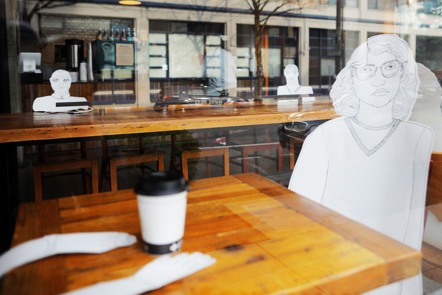 در تصویر بالا مشتریان کاغذی در پشت میزهای کافهای در سیاتل واقع در ایالت واشنگتن که اکنون تنها منوی بیرونبر دارد، نشستهاند. سیاتل یکی از مناطق اصلی شیوع ویروس کرونا بود.