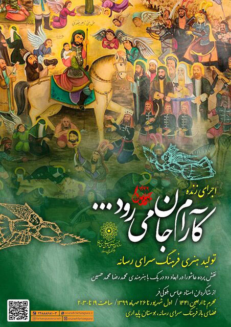 به گزارش روابط عمومی مرکز تجسمی حوزه هنری به نقل از روابط عمومی فرهنگسرای رسانه، محمدرضا محمدحسین، هنرمند در عرصه نقاشی قهوهخانهای، تابلوی عاشورایی «کآرام جان میرود» را از آغاز محرم تا روز اربعینحسینی در فضای باز فرهنگسرای رسانه به صورت زنده ترسیم میکند.