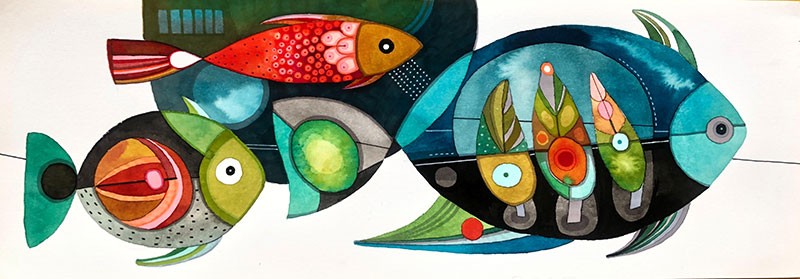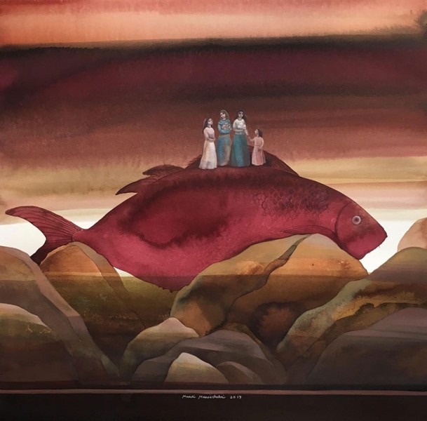 اگر بخواهم به تاثیراتی که باعث شکلگیری ذهنیتم شده اشاره کنم، میتوانم بگویم که این تاثیرات به زمان گذشته و سالهای خیلی دور برمیگردد. این منبع الهام برای من صرفا هنرمندان و آثار هنری نبودند، بلکه بخش مهمی برای من همیشه طبیعت بوده است. از کودکی شگفتزده طبیعت و عناصر آن بودم. بعد از آن وقتی وارد رشته هنر شدم، به جزئیات طبیعت دقت بیشتری میکردم و دیدن فرمها، ترکیب بندیها، بافتها و رنگها برایم مانند مطالعه تصویری بود. یک بخش مهم دیگر بافتههایی بود که از کودکی در محیط زندگی همراه ما بودند، مثل گلیمها و جاجیمها که مجذوب رنگها و نقشهایشان بودم. ولی اگر بخواهم به تاثیر هنرمندان و آثارشون اشاره کنم، اولین تصاویری که به خاطر دارم و تاثیرات فوقالعادهای تا امروز بر ذهن من گذاشتند، تصاویر کتابهای کانون پرورش فکری کودکان و نوجوانان بود که خوشبختانه این شانس رو داشتم به دلیل این که پدرم با کانون همکاری میکرد، بخش زیادی از کتابهای کانون رو در اختیار داشته باشم. مثل کتاب «عمو نوروز»، «پسرک چشم آبی» و «ماهی سیاه کوچولو» از فرشید مثقالی، «زال و سیمرغ» و «زال و رودابه» از نورالدین زرینکلک، «گل اومد، بهار اومد» از پرویز کلانتری و «سفرهای سندباد» از علیاکبر صادقی و خیلی کتابهای دیگر که تاثیراتشون در ناخودآگاه من ثبت شده است. چند کتاب خارجی ترجمه شده هم داشتم که تاثیرگذارترین انها برای من کتاب روسی عجایبنامه بود. بیشتر کتابهای مورد علاقه من در دوران کودکی داستانهای ادبیات کهن و افسانهها بودند و خودم هم سالها در تصویرگری، گرایش بیشتری به این موضوعات داشتم.