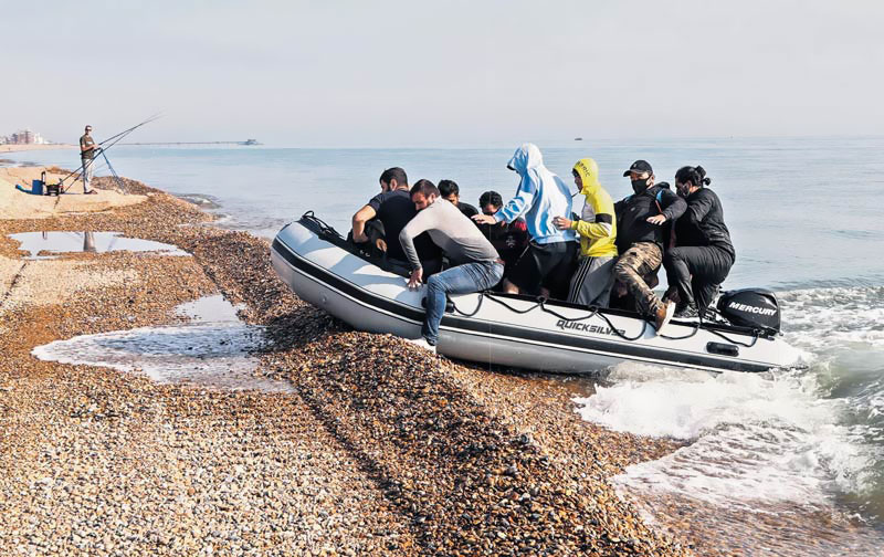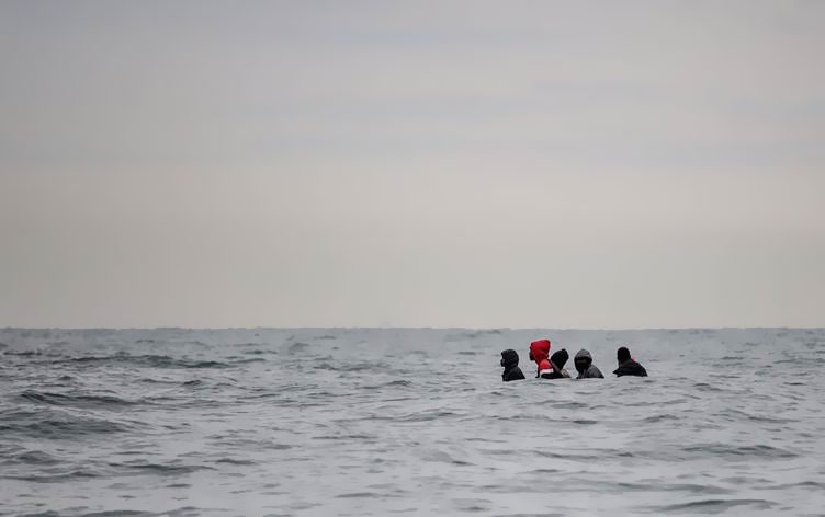 گروهی از مهاجران که پس از عبور از کانال انگلستان به سواحل «دوور» رسیدهاند