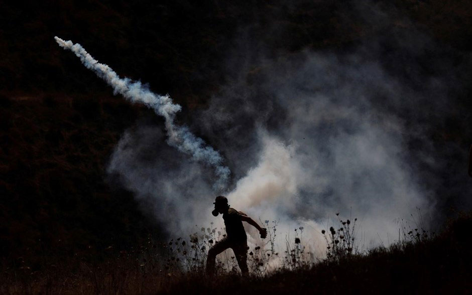 یک معترض فلسطینی گلوله گاز اشکآوری را که حین اعتراضات علیه شهرکسازی اسرائیل و عادیسازی روابط برخی اعراب با اسرائیل، توسط نیروهای اسرائیلی به سمت معترضان پرتاب شده است، بازمیگرداند / منبع: رویترز