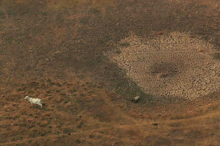 یک گاو در منطقه خشکشده واقع در پانتانال، بزرگترین پهنه تالاب گرمسیری جهان/ منبع: رویترز