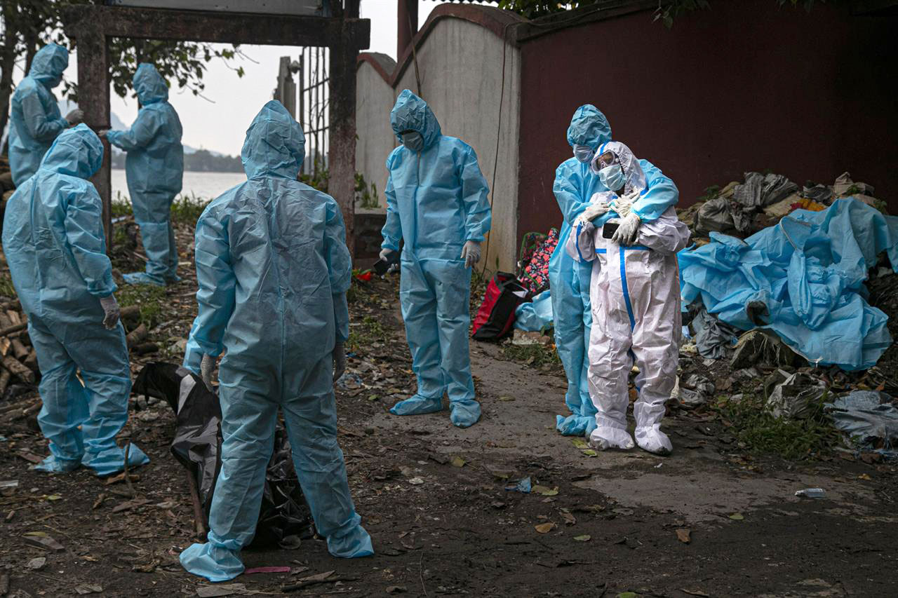 تصویر زنی در کنار جسد همسرش که از قربانیان ویروس کرونا است(هند) / منبع: اسوشیتدپرس