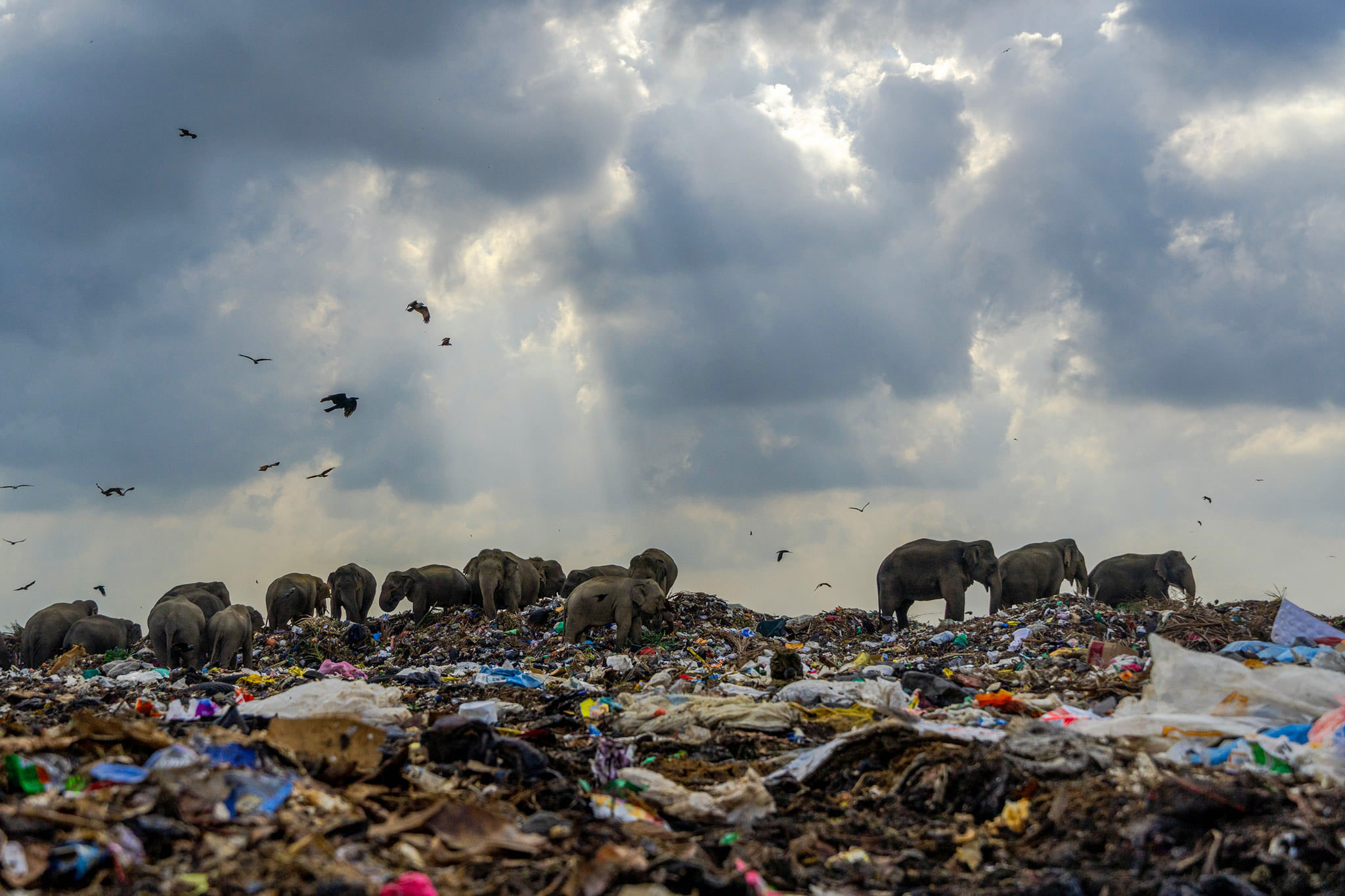 عکسی که توسط «Tilaxan Tharmapalan» در سریلانکا به ثبت رسیده است فیلهایی را به تصویر میکشد که در انبوه زبالهها به دنبال غذا هستند که این موضوع متاسفانه موجب بیمار شدن فیلها و مرگ بسیاری از آنها میشود. مقامات این کشور اخیرا انباشتن زباله در نزدیکی پناهگاههای حیاتوحش را ممنوع اعلام کردهاند.