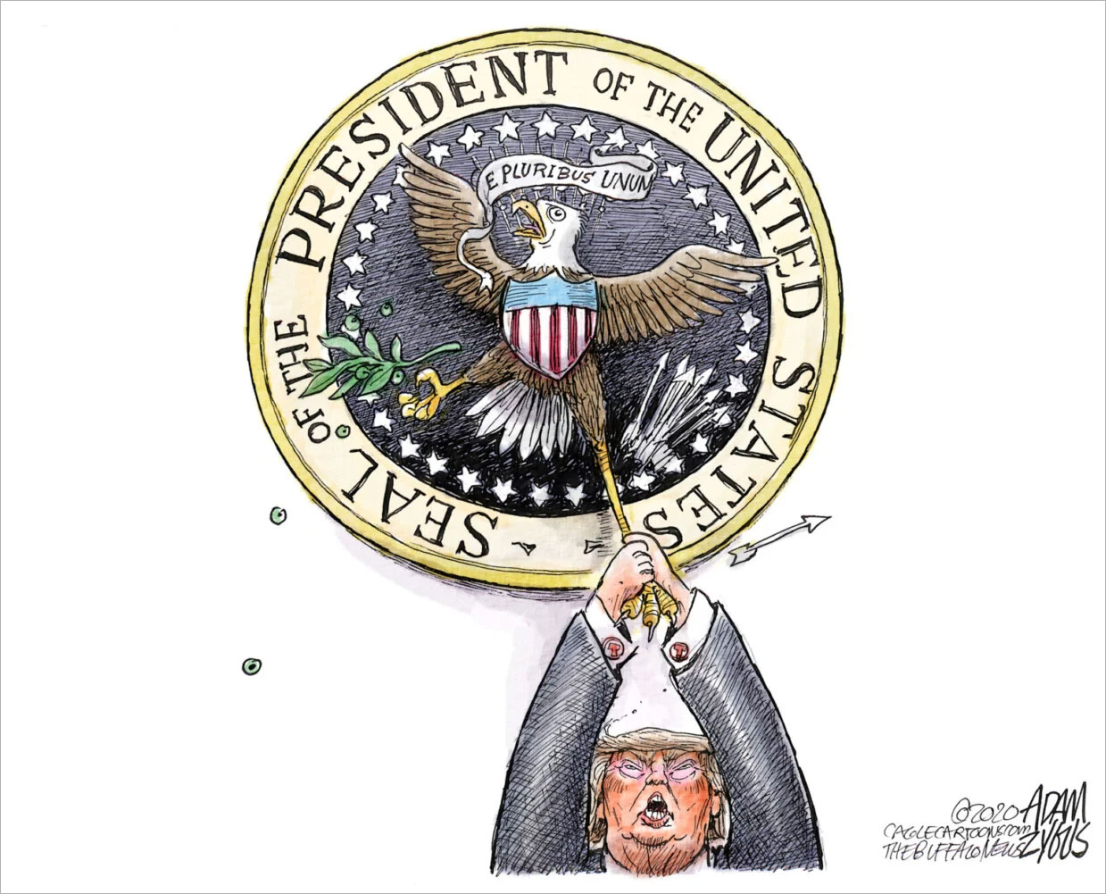 «آدام زایگلیس» کاریکاتوریست برنده جایزه پولیتزر از کسانی بود که با اعلام نتایج اولیه انتخابات به این موضوع واکنش نشان داد. در اثر این کاریکاتوریست، ترامپ در حالی که قصد ندارد از ریاست جمهوری آمریکا دست بکشد به تصویر کشیده شده است.
