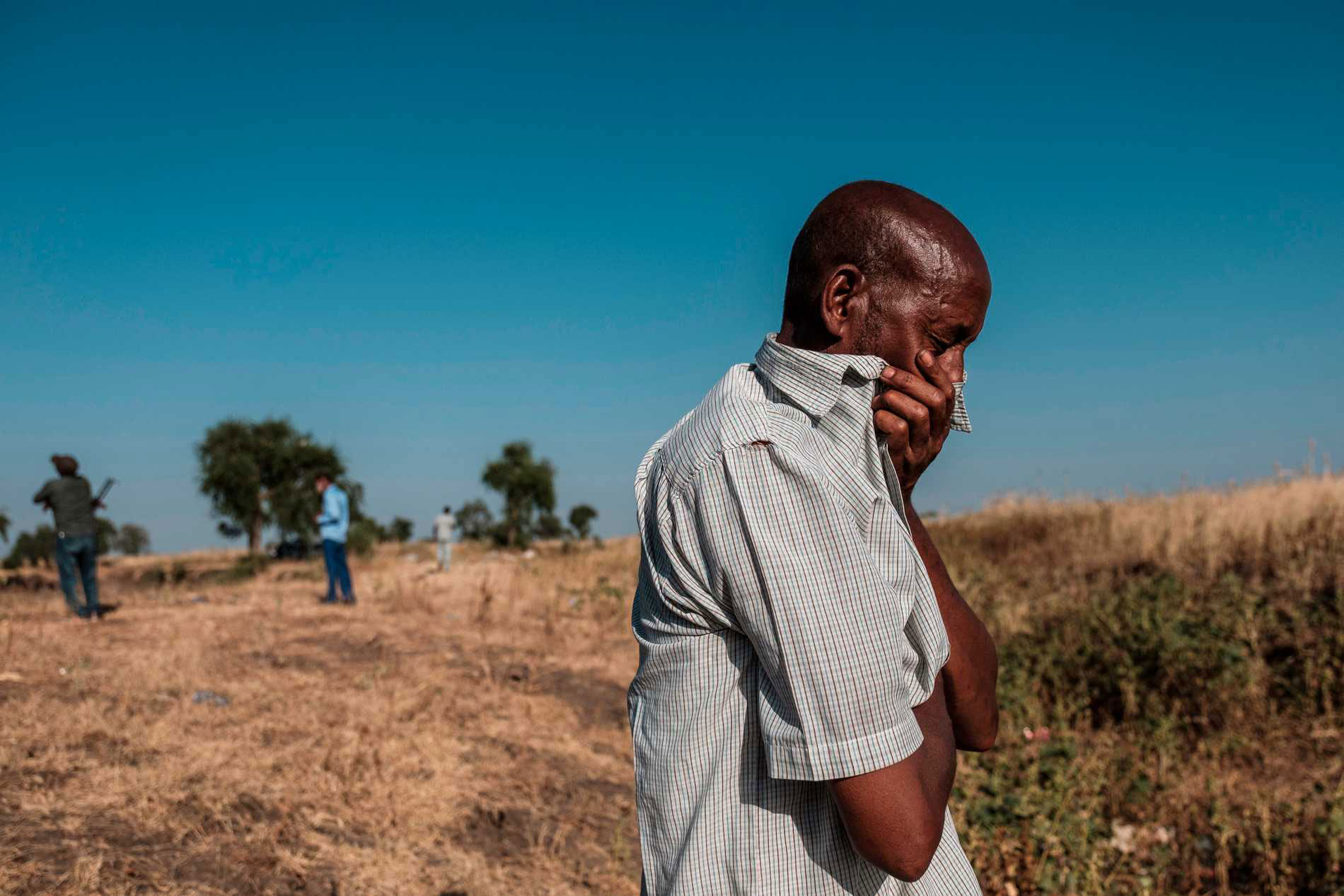 مردی در نزدیکی محل دفن اجساد بیش از ۲۰ نفر که در نهم نوامبر قتل عام شدند / اتیوپی - خبرگزاری فرانسه
