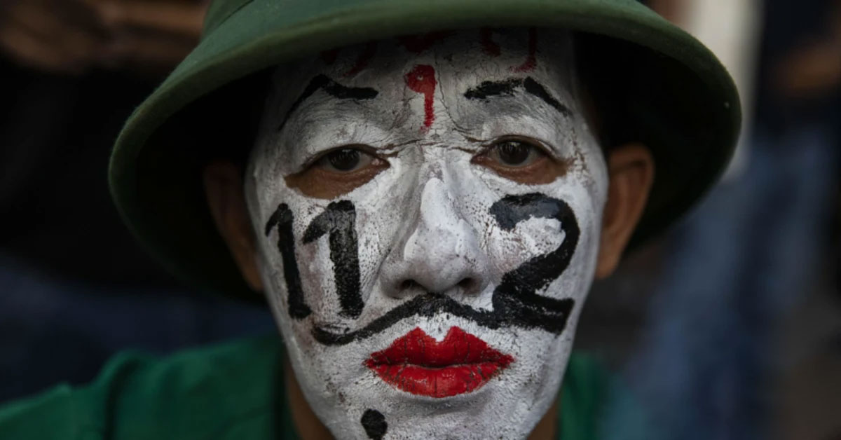 تصویری از یکی از معترضان به بند ۱۱۲ قانون مجازات کشور تایلند که انتقاد به خانواده سلطنتی تایلند را منع میکند / تایلند