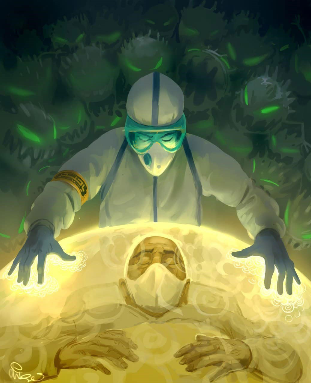 به گزارش روابط عمومی مرکز تجسمی حوزه هنری به نقل از هنر آنلاین، یک سال از آغاز شیوع کرونا گذشت و در این مدت عده زیادی از مردم سراسر جهان قربانی این بیماری شدند. از سوی دیگر کادر درمانی که وظیفه درمان و مراقبت از این بیماران را بر عهده داشتند از جمله افرادی بودند که بیش از سایر مردم مورد تهدید بیماری و خطر ابتلا به آن قرار گرفتند. پزشکان، پرستاران، بهیاران و همه شاغلین در بیمارستان‌ها و مراکز درمانی، در مواجهه دائمی با بیماران کرونایی قرار گرفتند و به همین دلیل بسیاری از آنها به این بیماری مبتلا شده و عده‌ای از آنان جان خود را از دست دادند.