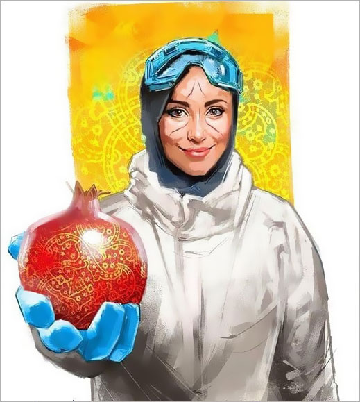 شهاب جعفرنژاد در نقاشی دیجیتال خود تقارن شب یلدا و روز پرستار را سوژه کار خود کرده و پرستاری را با یک انار در دست نشان می‌دهد، درحالی‌که شیارهای ناشی از استفاده مداوم ماسک و عینک محافظ بر چهره او نقش بسته است.