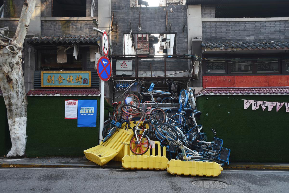 مسیری در «ووهان» با استفاده از دوچرخههای عمومی مسدود شده است / چین / ۲۰ فوریه ۲۰۲۰