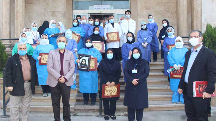 همچنین در پایان «مهدی معصومی گرجی» رییس حوزه هنری مازندران با تقدیم لوح تقدیر و تابلوی خوشنویسی به جمعی از پرستاران و پزشکان، به قدردانی از زحمات شبانه روزی این گروه پرداخت.