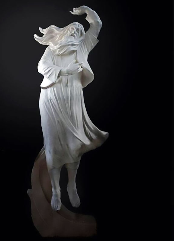 پیکره با استفاده از گچ قالبگیری، فایبرگلاس قالبگیری و بتن مسلح ساخته شده و با پایه خود بیش از هفت متر طول دارد و طبق تصمیم دانشگاه در باغ عرفان قرار گرفته و فضاسازیهای محوطه آن در حال انجام است.