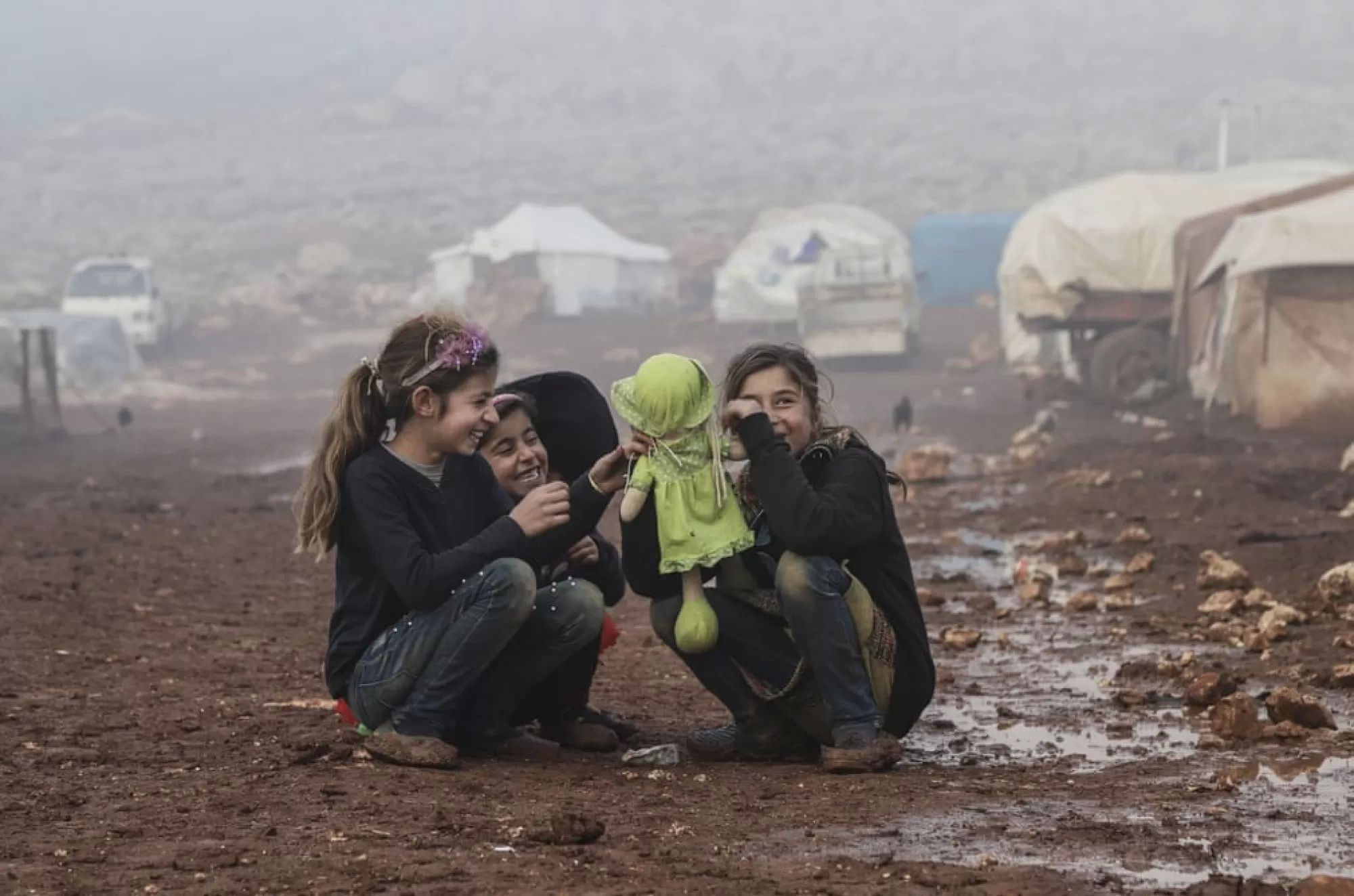 تصویری از کودکانی که در کمپ پناهندگان در «ادلب» بازی می‌کنند / سوریه / خبرگزاری آناتولی