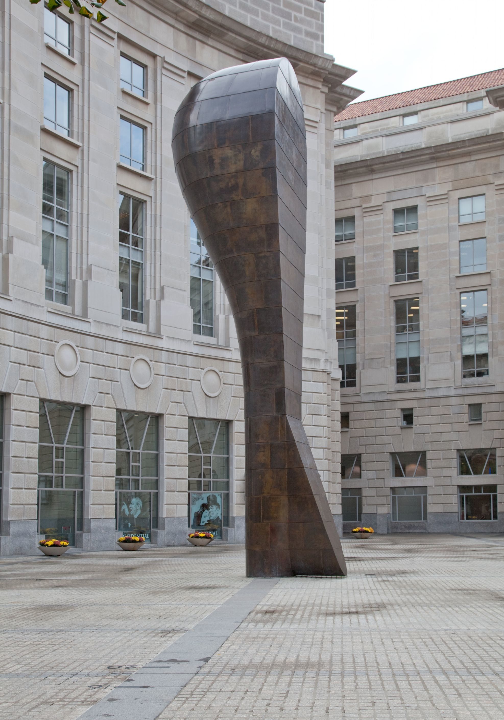 شهادت دادن Bearing Witness مجسمه قابل توجهی از مجسمه ساز مشهور "مارتین پری" است که در محوطه مرکز تجارت بین المللی رونالد ریگان واقع در واشنگتن نصب شده است. این قطعه انتزاعی تمایل "پری یر" را به کنار هم قرار دادن یک فرم انتزاعی و ساختمانهای کلاسیک نشان می دهد که حیاط را احاطه کرده اند. این مجسمه سیزده متری از ورق های برنزی منحصر به فردی ساخته شده است که با هم همپوشانی دارند و به صورت عمودی به هم جوش خورده اند. لایه خارجی از استیل ضدزنگ است.