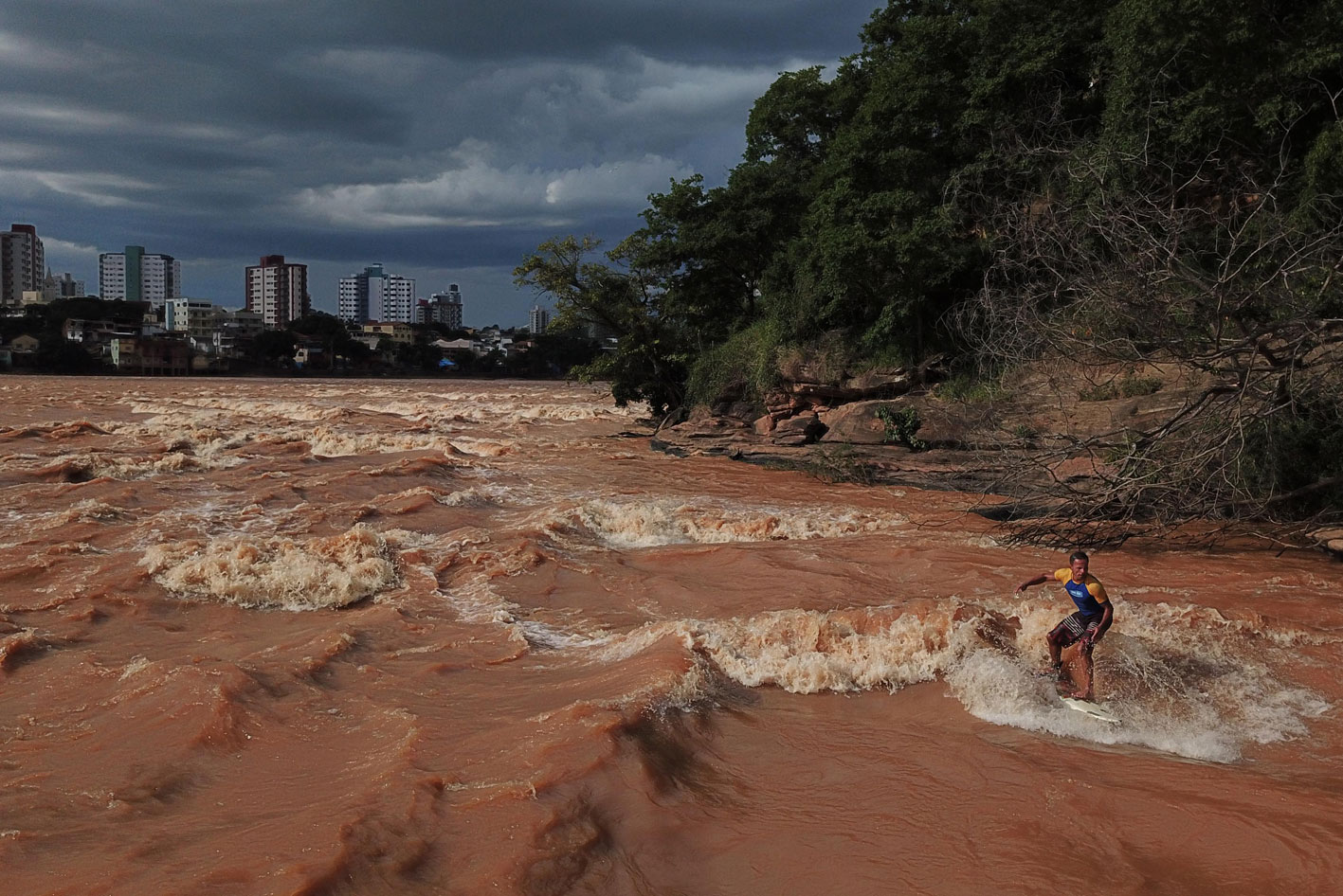 موج سواری بر روی رود «دوکو» در برزیل؛ با فرا رسیدن فصل بارش باران سطح آب این رود افزایش پیدا کرده و امکان موجسواری فراهم شده است / خبرگزاری فرانسه