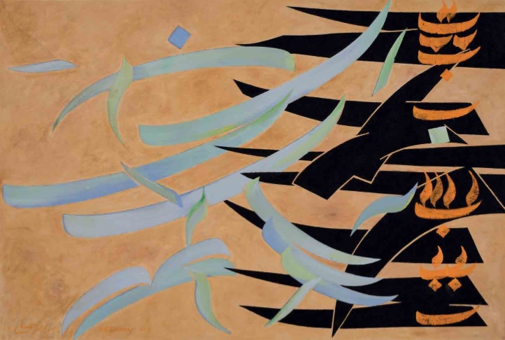 ترکیب بندی های سبز، قهوه ای، سیاه و سفید او به طور ملموسی متاثر از طرح های خطاطانه موجود در معماری اسلامی است، جایی که تنها یک حرف اهمیتی معادل ستون اصلی در بنا پیدا می کرد و چیزی نمی توانست جایگزین آن شود.