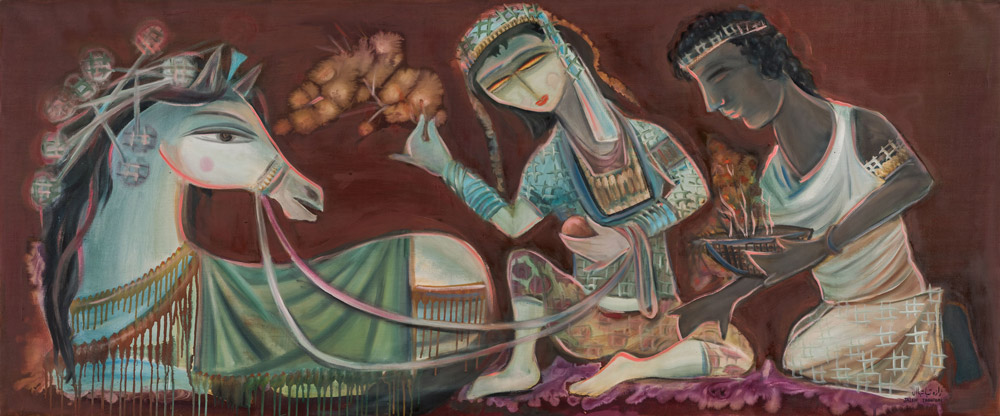 در اثر حاضر نقاش با درکی عمیق از زیباییشناسی موجود در نگارگری ایرانی، مدرنیته را به سنت پیوند زده است. او یک خیالپرداز تمام و کمال بود. آنچه در این نقاشی تصویر کرده بخشی از فرهنگ توده و آداب و رسوم سرزمینش است.