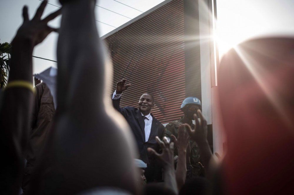 «فوستن-آرکانژ توادرا» رییس جمهور منتخب آفریقای مرکزی با طرفدارانش ملاقات میکند / بانگی جمهوری آفریقای مرکزی / خبرگزاری فرانسه