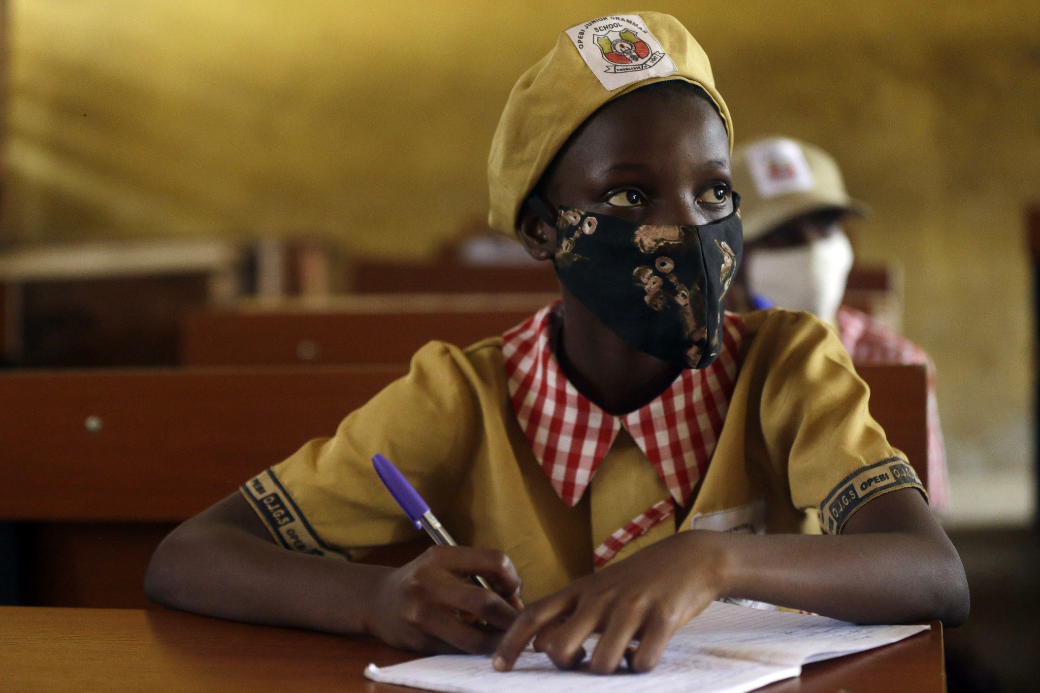 دانشآموزان یک مدرسه در «لاگوس» با استفاده از ماسک در کلاسها حضور پیدا میکنند. پس از ماهها تعطیلی مدارس برای جلوگیری از شیوع ویروس کرونا، مقامهای نیجریه در هفته جاری مدارس خصوصی و دولتی کشور را بازگشایی کردند/ اسوشیتدپرس