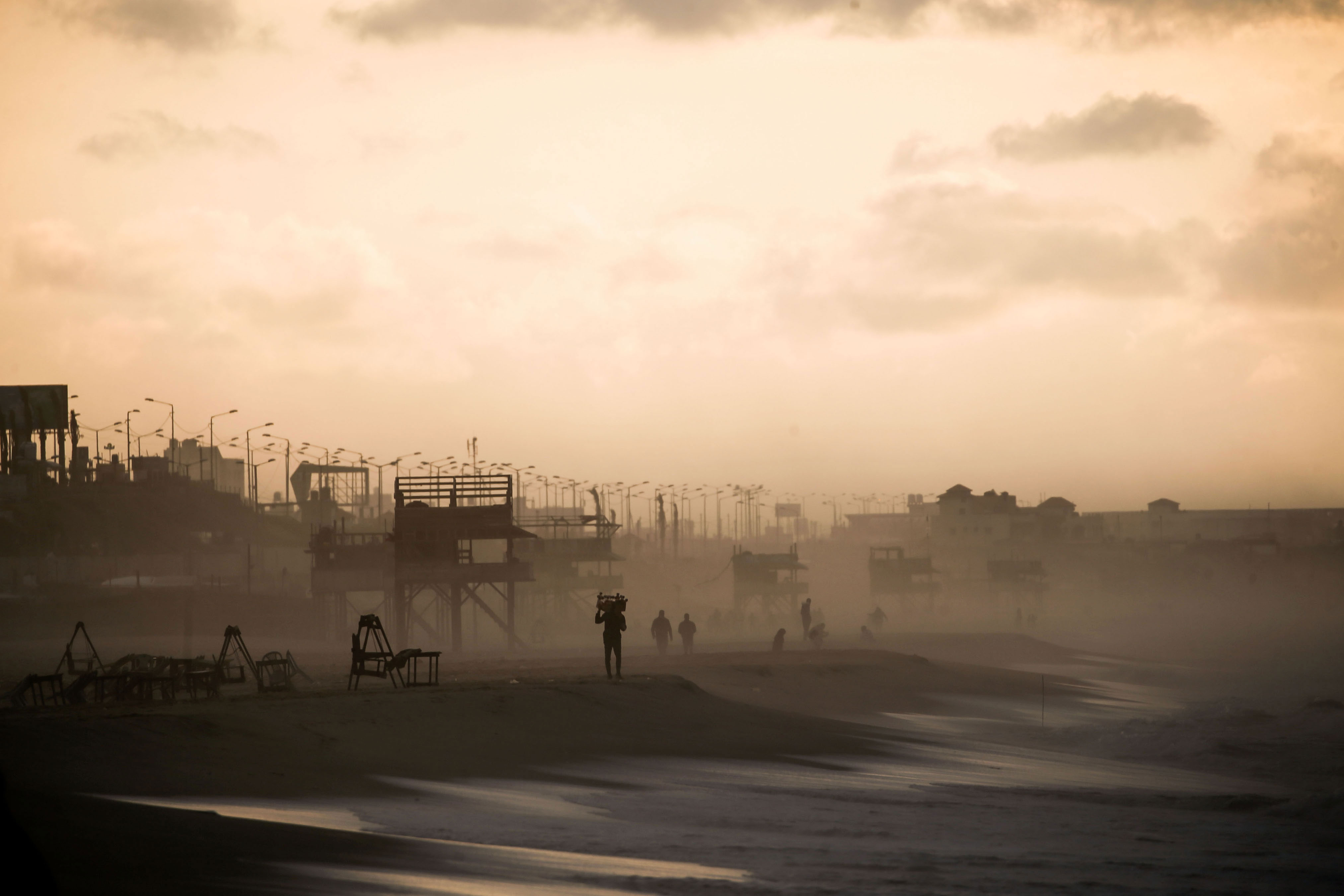 تصویری از فلسطینیهایی که پیش از اجرای قانون منع رفت و آمد در شهر غزه، در کنار ساحل قدم میزنند / خبرگزاری فرانسه