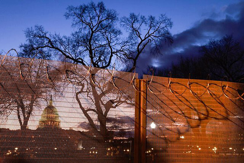 همچنان چند روز پس از مراسم تحلیف «جو بایدن» رئیس جمهور ایالات متحده آمریکا ساختمان کنگره با سیم خاردار و حصار فلزی احاطه شده است / واشنگتن دی سی / ایالات متحده آمریکا