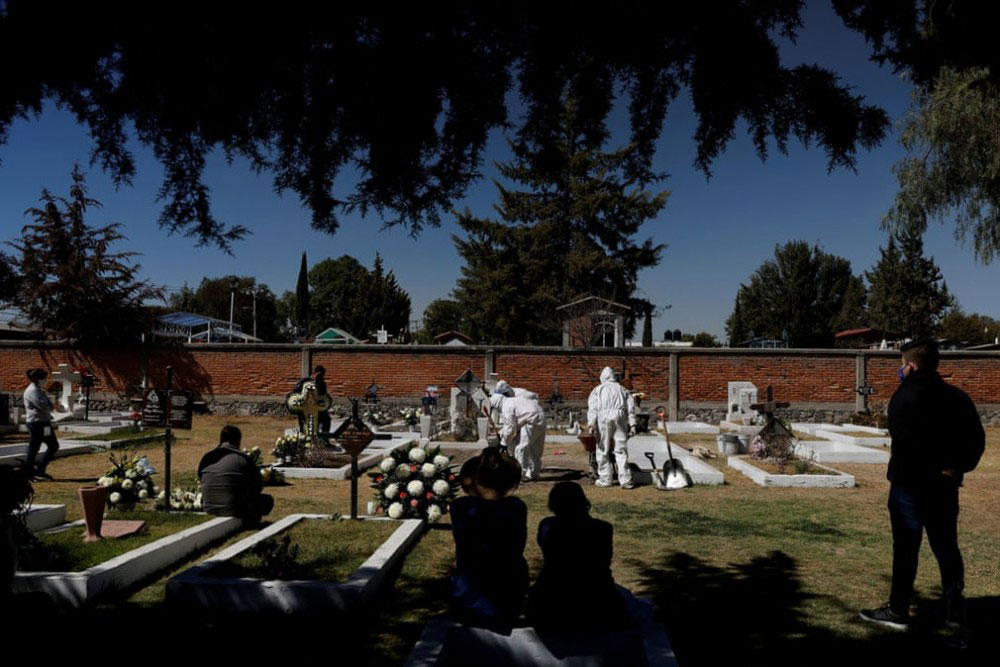 جسد فردی که بر اثر ابتلا به «کووید-۱۹» جانش را از دست داده است، در حضور اعضای خانواده او دفن میشود / مکزیکو سیتی / رویترز