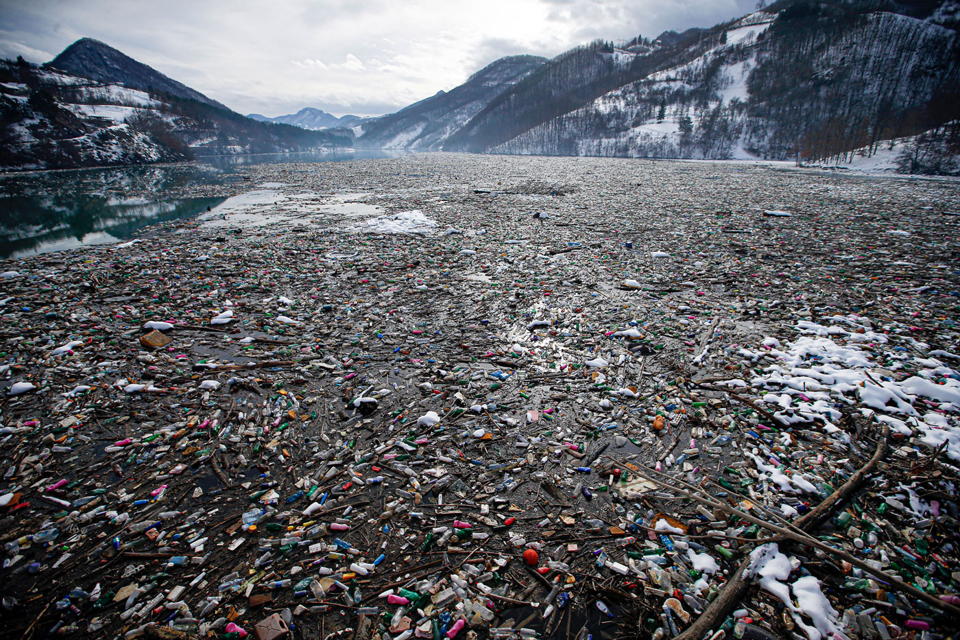 تصویری از حجم زیاد بطریهای پلاستیکی و سایر زبالهها در دریاچه «Potpeć» / صربستان / اسوشیتدپرس