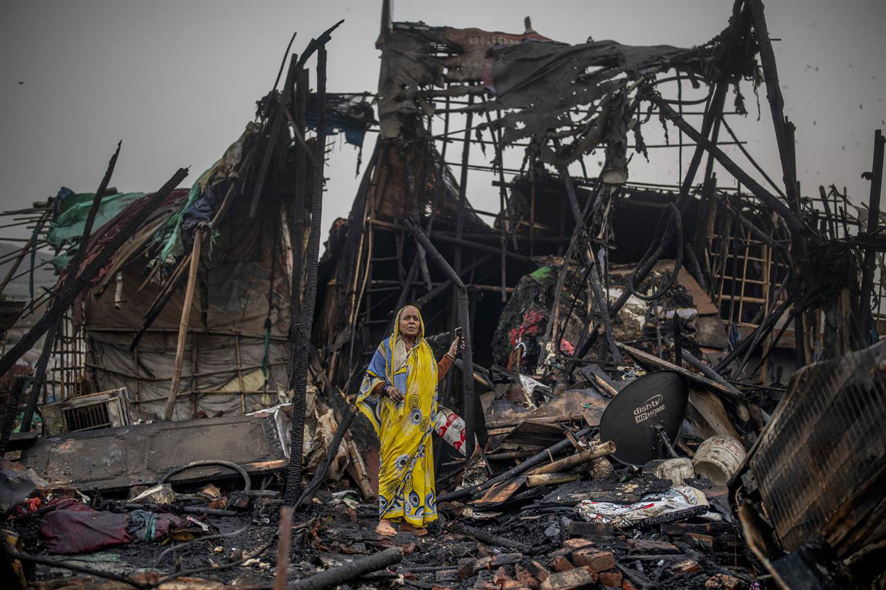 تصویر زنی در کنار ویرانههای ناشی از یک آتشسوزی / دهلی نو / اسوشیتدپرس