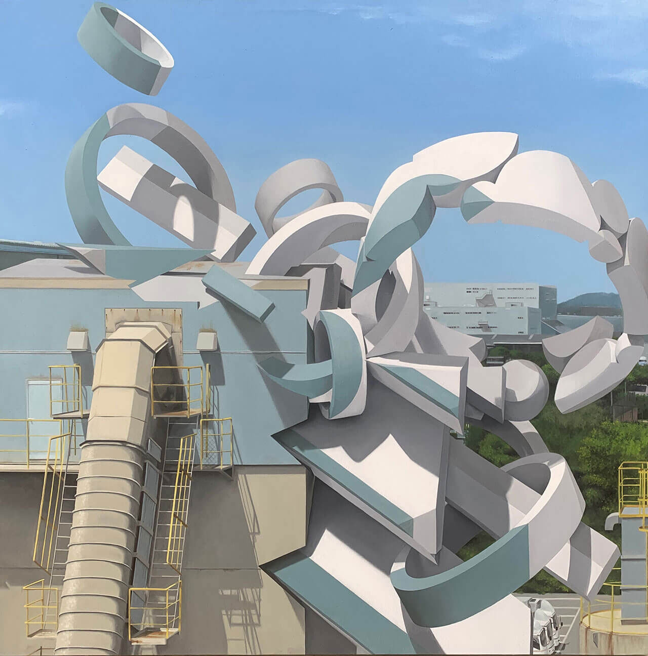 با توجه به گرایشم در راستای سبک نقاشی آنامورفیک، تصمیم میگیرم که شکلهای سنتی خود را تغییر داده تا بتوانم آنها را با ماژولهای استاندارد ساختارهای معماری ترکیب کنم و اغلب آنها را از اجسام نامنظم و صاف به تصاویرهندسی سه بُعدی تغییر میدهم.