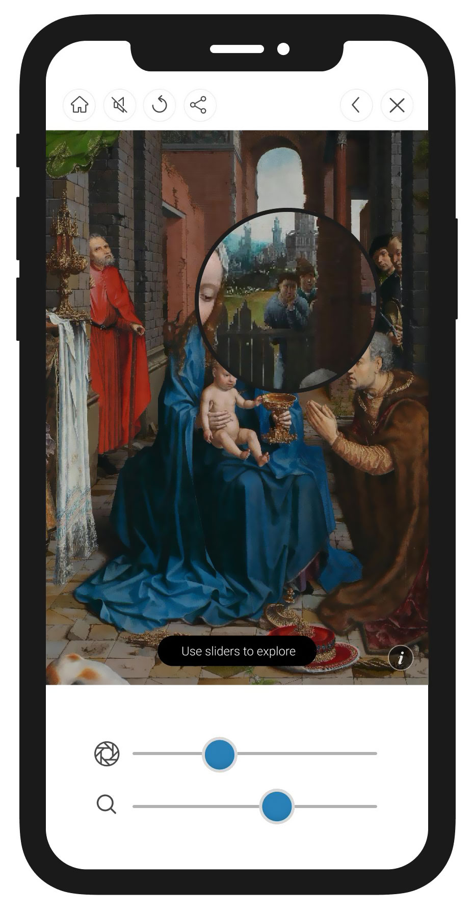 این شاهکار هنری متعلق به قرن شانزدهم میلادی که داستان تولد عیسی مسیح را روایت میکند، جذابترین اثر نمایشگاهی بود که دسامبر گذشته (آذر- دی ۹۹) در نگارخانه لندن برپا و با شروع قرنطینه سراسری در انگلیس، پس از یک هفته به ناچار جمعآوری شد. افراد زیادی شانس بازدید از این شاهکار را به دست نیاوردند و همین امر باعث شد نگارخانه ملی لندن این اثر را در نمایشگاهی مختص کاربران تلفنهای همراه به نمایش بگذارد. برخلاف بازدید حضوری در چنین نمایشگاهی کاربران میتوانند روی تک تک جزئیات تابلو زوم کنند.