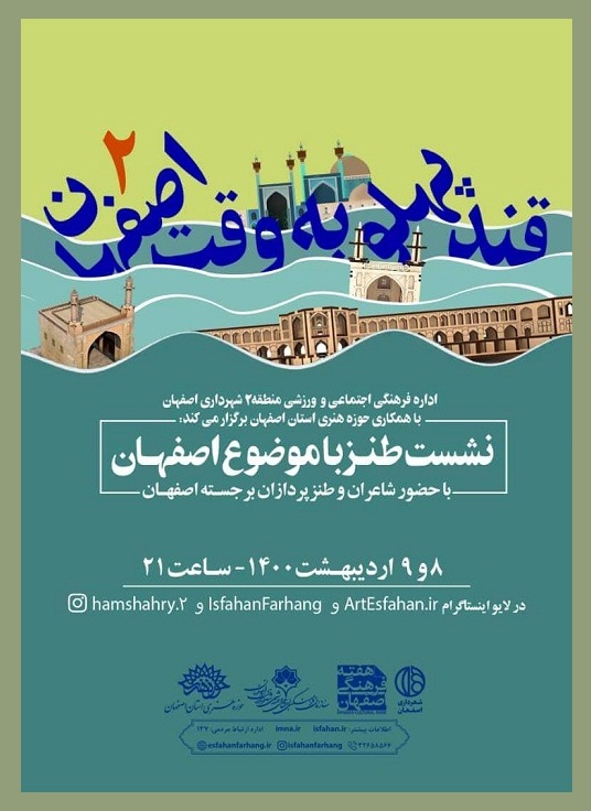 به گزارش روابط عمومی دفتر طنز حوزه هنری ، برنامه طنز «قندپهلو» با حضور طنزپردازان خوب اصفهانی به مناسبت هفته اصفهان برگزار میشود.