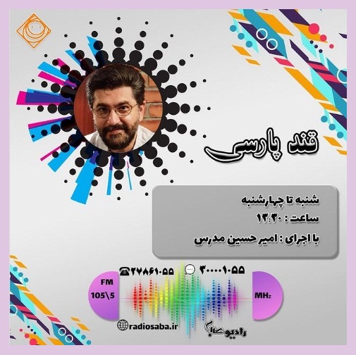 قند پارسی شنبه تا چهارشنبه هر هفته ساعت ۱۳:۳۰ از رادیو صبا روی موج اف ام ردیف 105.5 مگا هرزتر، پخش میشود.