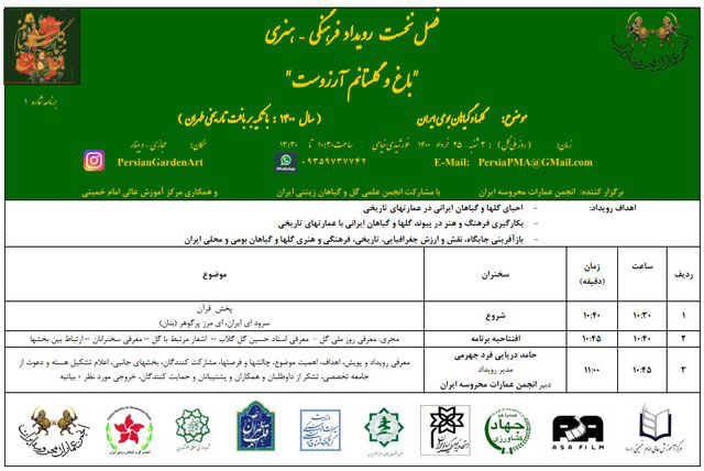 - بازآفرینی جایگاه، نقش و ارزش جغرافیایی، تاریخی، فرهنگی و هنری گلها و گیاهان بومی و محلی ایران