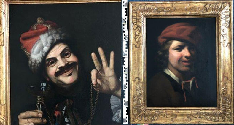 یکی از نقاشیها خودنگارهای از «پیترو بلوتی» نقاش ایتالیایی است که او را در حال لبخند زدن به تصویر میکشد و به سال ۱۶۶۵ تعلق دارد. نقاشی دیگر که چهره یک پسر را به تصویر کشیده است به عنوان یکی از آثار «ساموئل فن هوگاستراتن» نقاشی هلندی به شمار میرود و تاریخ خلق آن مشخص نیست.