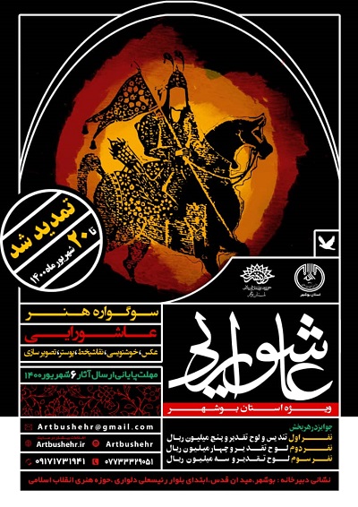 همچنین سوگواره هنری عاشورایی مهلت ارسال تا 6 شهریور تعریف شد، اما فرصت تولید و ارسال آثار تا 20 شهریور ادامه یافت.