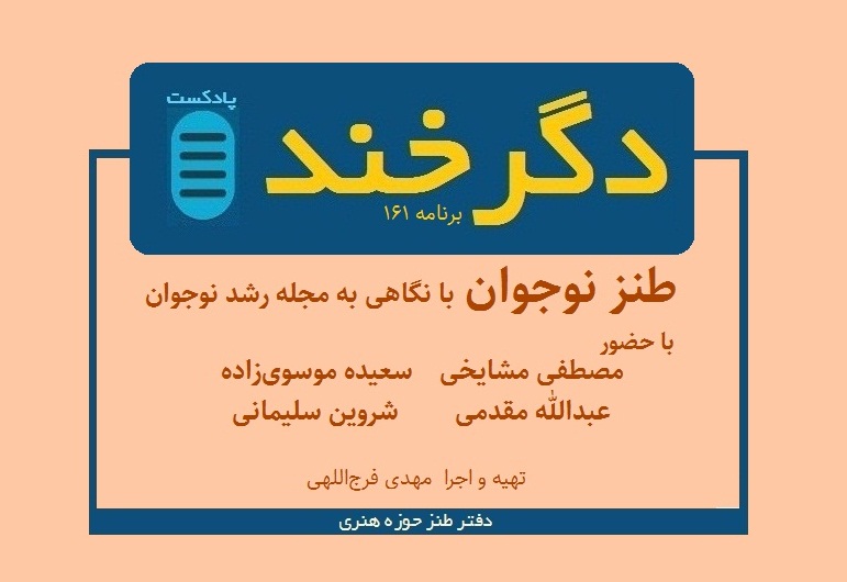 به گزارش روابط عمومی دفتر طنز حوزه هنری صد و شصت و یکمین برنامه دگرخند با موضوع طنز نوجوان در قالب پادکست و به صورت صوتی منتشر شد.