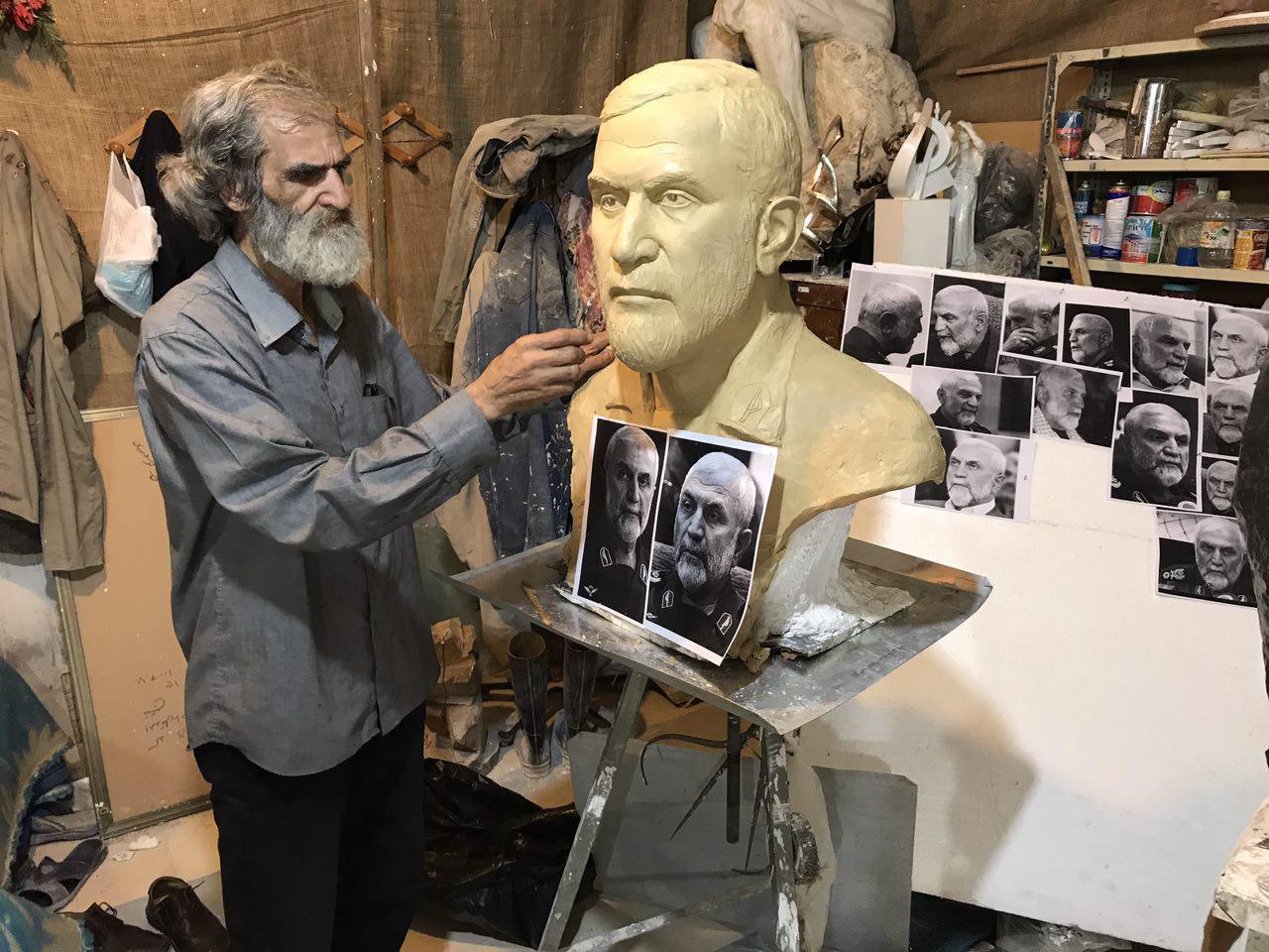 علی اصغر یوزباشی از هنرمندان مجسمهساز پیشکسوت حوزه هنری از پایان ساخت تندیس سردار شهید حسین همدانی خبر داد. وی درباره مشخصات این اثر گفت: این مجسمه در ابعاد یک و نیم برابر اندازه واقعی و با استفاده از خمیر ساخته شده است که در مرحله بعد و به منظور بالابردن استحکام و ماندگاری بیشتر با گچ قالبگیری خواهد شد. استاد یوزباشی درباره نحوه شکل گیری این اثر افزود: چند روز پیش در گفتگویی با سید مسعود شجاعی، ایشان به سفری که به شهر همدان داشت اشاره کرد و از نیتاش برای جانمایی و نصب مجسمه ای از سردار همدانی در یکی از بلوارهای شهر گفت. همین گفتگو زمینهساز طراحی و ساخت تندیس آن شهید بزرگوار شد و ظرف دو هفته کار ساخت مجسمه به پایان رسید. علی اصغر یوزباشی به چگونگی برداشت ذهنی خود در پروسه شکلگیری اثر پرداخت و ادامه داد: من شناخت عمیقی از شهید همدانی نداشتم؛ اما از آنجا که همه شهیدان برای من از ارزش و اعتبار بالایی برخوردارند و رسیدن آنها به مقام شهادت بیانگر جایگاه رفیع ایشان نزد خداوند متعال است، شروع به طراحی و ساخت اثر کردم. در اصل عاشورا اتفاقی است که خیلیها از آن درس میگیرند و مثل شهید همدانی و شهید حججی، با خدا معامله میکنند و عدهای هم فارغ از درک مفهوم و پیام آن، تنها به ظواهر صرف در ایام محرم میپردازند. وی ادامه داد: ارتباط من با شهدا نوعی ارتباط دلی است و هر زمان که این ارتباط برقرار میشود، نتیجه کار برای خودم رضایتبخش است، هرچند از خدا میخواهم که آثارم این قابلیت را داشته باشند تا با مخاطب هم ارتباط موثری برقرار کنند.