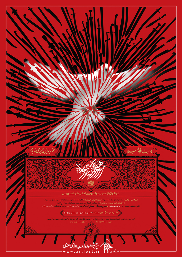 پوستر و پرچمهای سوگواری اعلان فراخوان کرده است. در این فراخوان آمده است: حوزه هنری انقلاب اسلامی در نظر دارد با هدف بهره¬مندی از ظرفیتهای واقعه کربلا در زمینه خلق آثار تجسمی، یازدهمین سـوگواره هنــر عاشورایـی را همزمان با محرم و صفر سال 1439ﻫ.ق در آبان ماه 1396ﻫ.ش به صورت بینالمللی بـرگزار نماید.