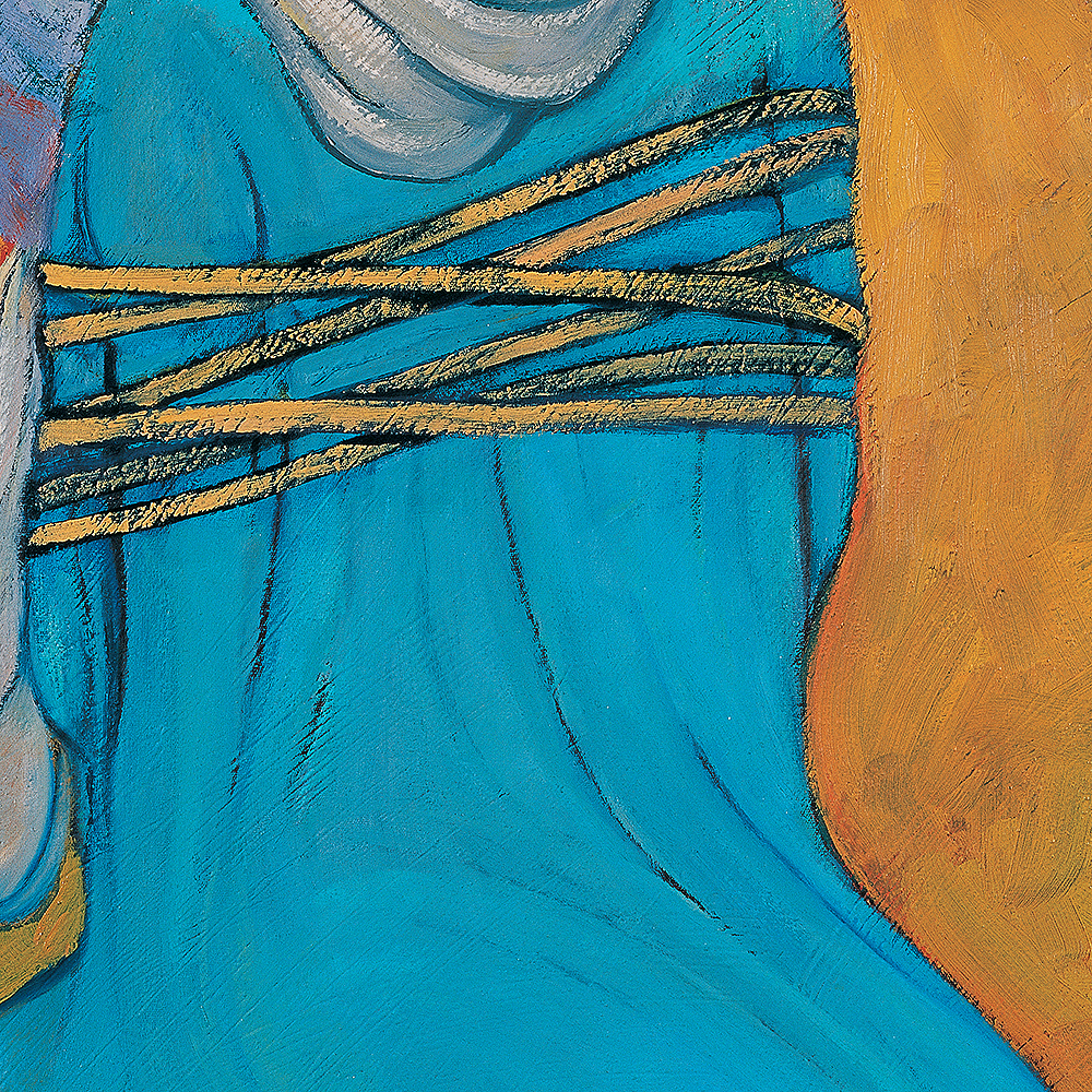 تابلو نقاشی اسیر، از ناصر سیفی، اثری قابل تامل از نظر فرم و محتوا با موضوع جنگ ایران و عراق است با تصویری از یک رزمنده ایرانی که با دست های بسته در فضایی انتزاعی، روی دو زانو نشسته است. با نگاهی به این اثر موضوعی، در دل رنگ ها و فضای غیرواقعی اثر که با تلفیق رنگ های سرد و گرم همراه است، فرم نشستن رزمنده و حالت سر و گردن او، نشانه هایی از نقاشی ایرانی را به تصویر می کشد. همچنین استفاده از طیف رنگ از گرم به سرد در زمینه اثر، توانسته پرسپکتیو محسوسی را بدون خدشه دارکردن شیوه و اصول نقاشی ایرانی، در اثر ایجاد نماید. سیفی به طور هوشمندانهای با بهره گیری از ویژگی های نقاشی اصیل ایرانی و تلفیق و امتزاج آن با فضای اکسپرسیونیستی، پیوند جالبی میان دو سبک نقاشی ایرانی و نقاشی غربی ایجاد کرده که جذابیت این اثر را در چشم بیننده دوچندان می کند.