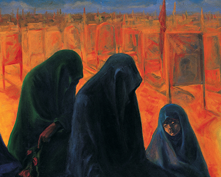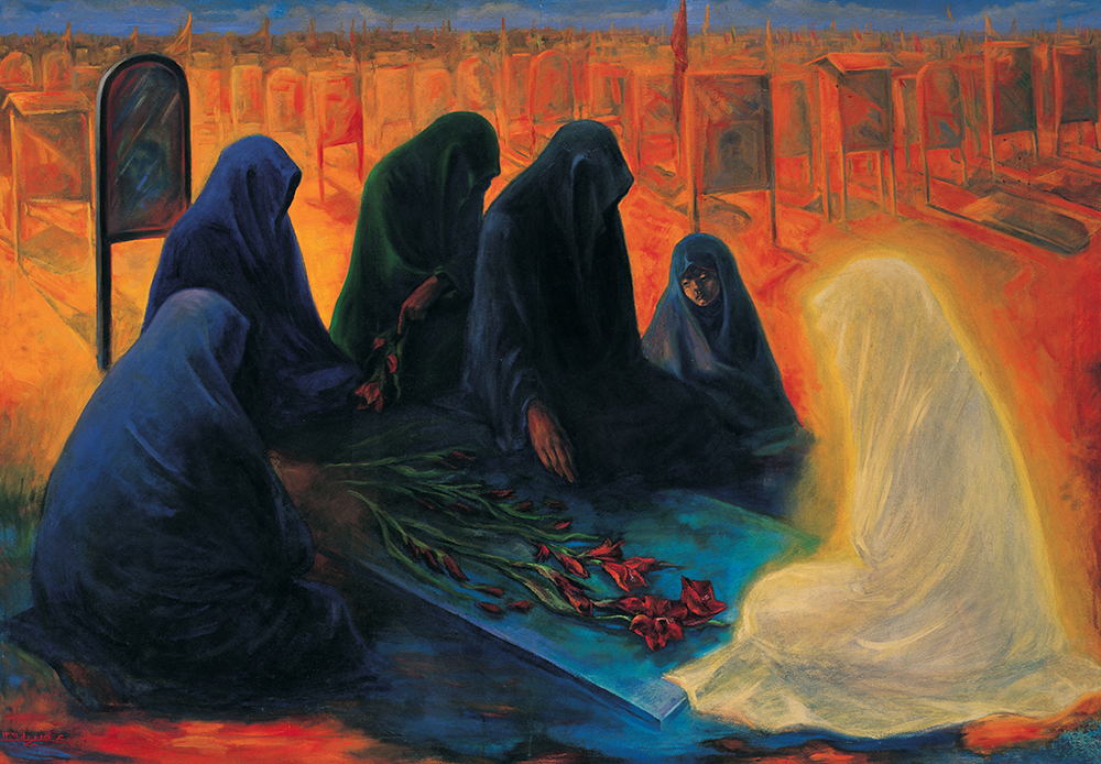 تابلوی بهشت زهرا از اولین آثارعبدالحمید قدیریان می باشد که تحت تأثیر فضای فرهنگی آن روزهای انقلاب کشیده شده اشت و به حضور قدسی حضرت زهرا سلام الله علیها اشاره دارد.